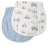 Made with 2 layers of super soft breathable cotton, our pre washed burp cloths are gentle on your baby’s delicate skin. This set includes two essential cloths: one featuring a charming vintage vehicle print with cars, trucks, and scooters, and a second in a coordinating solid dusty blue. The modern peanut shaped design gives you full shoulder coverage, making them great for feeding, spit ups, burping, and drooling. It is a thoughtful baby shower gift or a great addition to any baby gift basket.