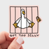 The ultimate sticker for anyone who has ever taken the bit a little too far is finally here. This premium vinyl decal features a hilarious goose behind bars, capturing that exact feeling of getting a little too carried away with the silliness. It is a must-have for those who embrace their chaotic side and love a good laugh.