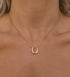 A little luck and a lot of shine. This thin gold snake chain features a dainty horseshoe pendant that feels equal parts classic and cool. Perfect for layering or wearing solo for a subtle statement.