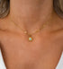 Keep the sunshine with you wherever you go with this vibrant sun pendant necklace. Featuring a radiant golden sun with a bright turquoise stone at the center, this choker is suspended on a unique shimmer chain that sparkles with every movement. It is a gorgeous choice for anyone who loves a bohemian or beachy vibe, making it a stellar gift or a fun treat for your own jewelry collection.